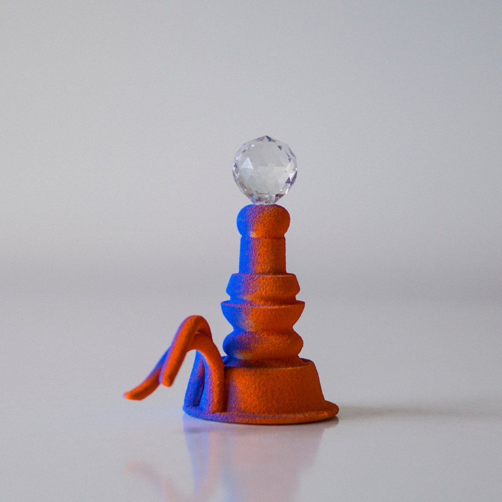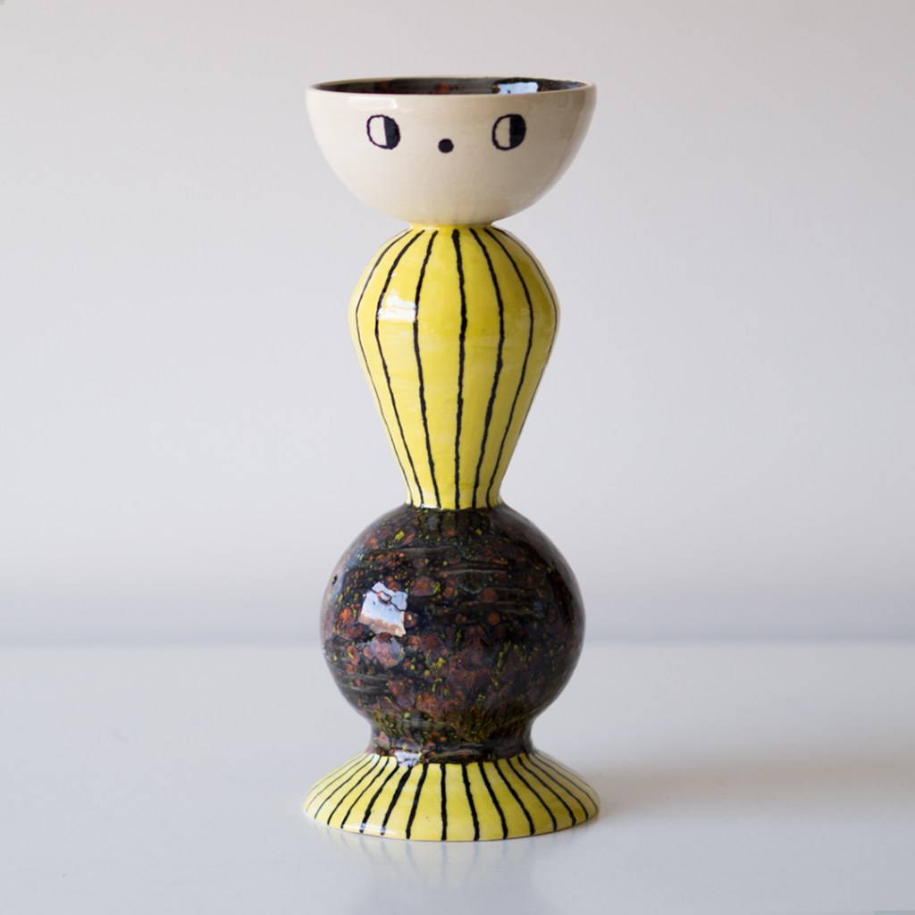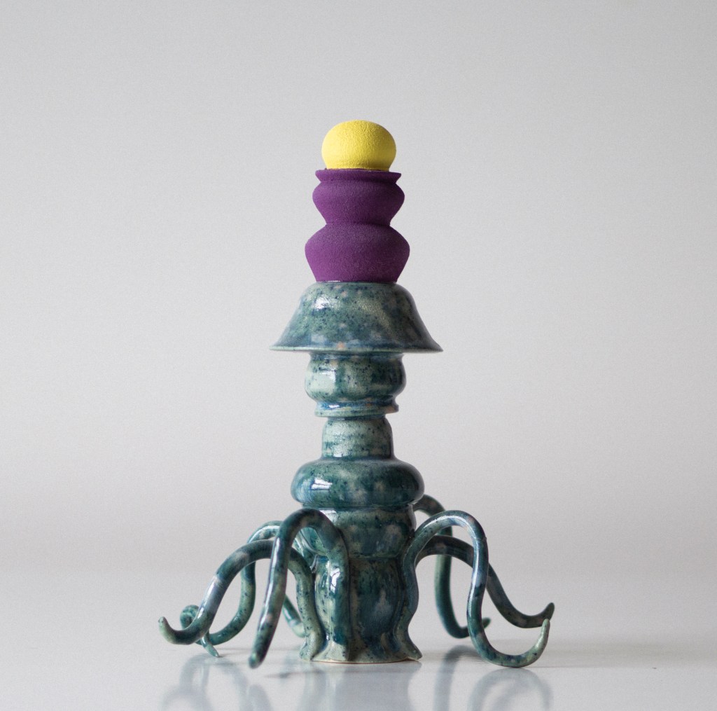 GAL. Traballo sobre a plástica do xoguete e o equilibrio entre as formas xeométricas e cores intensas, partindo de referencias do mundo da animación ou da marioneta. O que me aporta a idea do boneco é unha proximidade que me permite saltar barreiras estéticas e achegarme ao lado máis pueril da persoa que observa a obra.